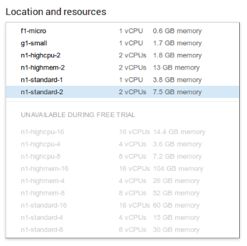 Like in the case of Amazon the Free Voucher is very limited. You can only launch smaller models. From f1-micro (1 core in Shared CPU) to n1-standard-2 (2 vCPU and 7.5 GB RAM).